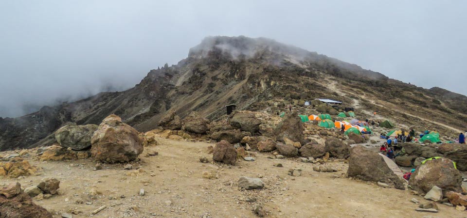 We hike from Simba camp up towards Kibo till 3 482m for lunch at First Caves, a distance of 5.8km. After lunch we continue trekking until reaching Kikelewa Camp at about 3679 metres.The views start to open up and you begin to feel you’re on a really big mountain! Water can be found in a obvious stream below the cave, although you might have to wander downhill a way to find a pool or two. Enjoy dinner and overnight at Kikelewa camp.